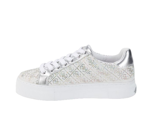 GUESS WOMENS TENNIS SHOE SILVER/WHITE GELSEN 2, GWGELSEN2 SIL