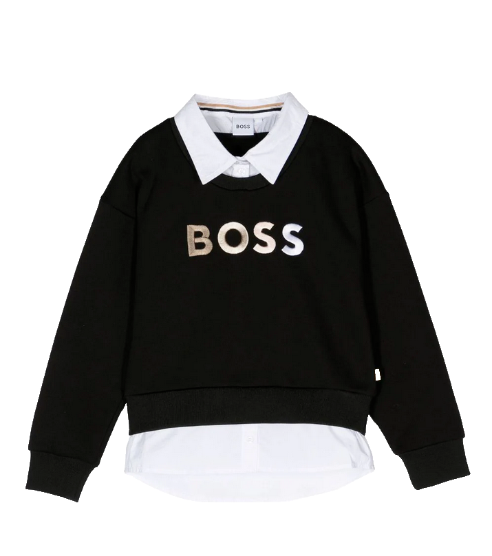 HUGO BOSS KIDS BLACK HUGO BOSS SHIRT COLLAR SWEATSHIRT J15494 09B